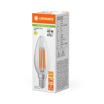 Ledvance Classic LED E14 Kaars Filament Helder 3.4W 470lm - 827 Zeer Warm Wit | Dimbaar - Vervangt 40W