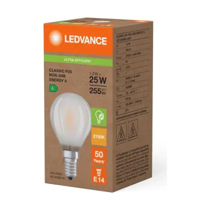 Ledvance LED Classic E14 Peer Filament Mat 1.2W 255lm - 827 Zeer Warm Wit | Vervangt 25W