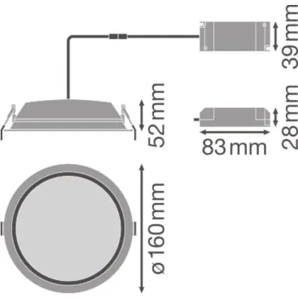 Ledvance LED Downlight Alu DN150 14W 1190lm 100D - 830 Warm Wit | 160mm - IP44 - Dali Dimbaar