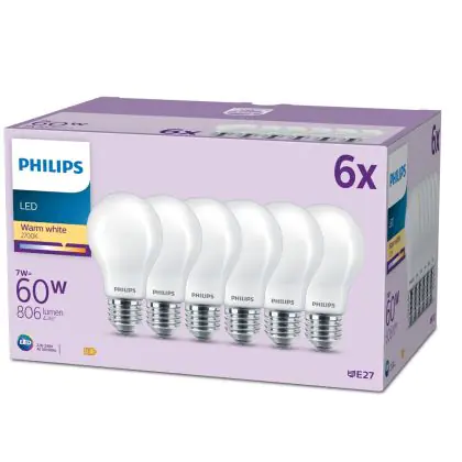 Voordeelpak 6x Philips Lamp LED E27 Peer Mat 7W 806lm - 827 Zeer Warm Wit